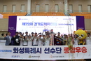화성시와 이천시가 '제72회 경기도체육대회 2026 광주' 1, 2부에서 종합우승을 차지했다. 화성시는 16일부터 18일까지 3일간 광주시 일원에서 열린 대회 1부에서 종합점수 3만 2667점을 획득하며 수원시(3만 2462점)와 성남시(2만 8632점)를 제치고 종합우승기를 차지했다. 이로써 화성시는 2023년 69회 대회 이래 4년 연속으로 종합우승기를 지키며 도내 최강 전력을 입증했다. 이번 대회에서 화성시는 사전경기부터 선두권을 유지한 가운데, 본경기에서도 종목별 고른 성적을 거두며 경쟁 시·군의 추격을 따돌렸다. 특히 육상(3959점), 수영(1347점), 축구(1188점) 등 총 5개 종목에서 종목우승을 차지하며 안정적인 점수 확보에 성공했다. 또한 소프트테니스, 검도 등에서도 상위권 성적을 기록하는 등 주요 종목에 걸쳐 고른 전력을 보인 것이 우승의 원동력이 됐다. 2부에서는 이천시가 종합점수 2만 5908점을 기록하며 포천시(2만 4595점)와 의왕시(2만 4424점)를 따돌리고 정상에 올랐다. 지난 69회 대회에 이어 3년 만에 정상을 탈환한 이천시는 테니스(1275점), 소프트테니스(1150점), 탁구(1475점)등에서 종목우승을 차지했고,