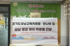 경기도성남교육지원청은 설 명절을 앞둔 12일 성남시 소재 사회복지시설 ‘안나의 집’을 방문해 시설 관계자 및 이용자들에게 따뜻한 명절 인사를 전하고 위문품을 전달했다. 성남교육지원청은 지역사회와 함께하는 따뜻한 교육공동체를 실현하고 어려운 이웃과 나누는 문화를 확산하기 위해 매년 명절마다 사회복지시설을 찾아 나눔 활동을 이어오고 있다. 이날 ‘안나의 집’ 김하종 신부는 “성남교육지원청 직원분들의 관심과 배려 덕분에 이번 설이 더욱 따뜻하고 풍성하게 느껴진다”며 “지역 내 위기 청소년들을 위해 다양한 지원과 프로그램을 운영해 아이들이 따뜻한 지역사회 안에서 성장할 수 있도록 노력하겠다”고 말했다. 한양수 교육장은 “이번 방문이 소외된 이웃 없이 모두가 함께 웃으며 풍요로운 명절을 맞이하는 계기가 되길 바란다”며 “앞으로도 성남교육지원청은 지역사회와 온정을 나누고 행복한 명절 문화를 확산하는 데 지속적으로 힘쓰겠다”고 밝혔다. [ 경기신문 = 이양범 기자 ]