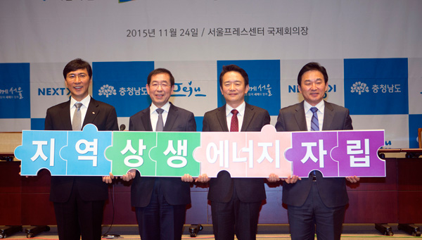 남경필 경기도지사와 박원순 서울시장, 안희정 충남지사, 원희룡 제주지사는 24일 서울 프레스센터에서 ‘에너지 정책, 지역이 만나다’를 주제로 지역별 에너지정책과 사례를 공유하고, 지역에너지 전환 공동선언문을 발표했다.