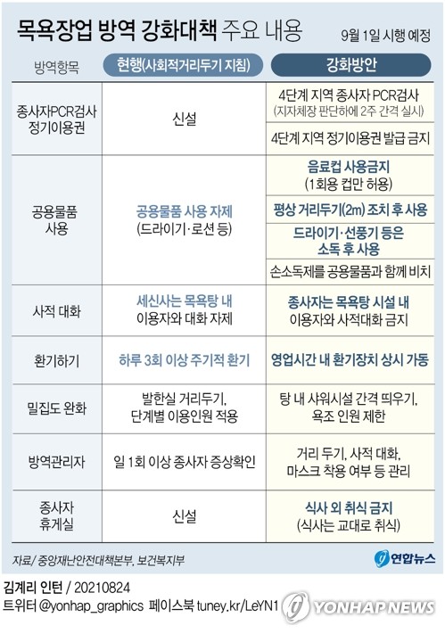 이는 최근 감염에 취약한 목욕탕을 중심으로 신종 코로나바이러스 감염증(코로나19) 확진자가 급증한 데 따른 것이다.