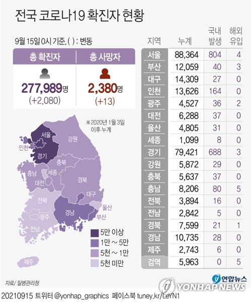 지난 1주간(9.9∼15) 일평균 지역발생 확진자는 약 1천763.4명으로, 직전 주(9.2∼8)의 1천680.3명보다 83.1명 늘었다.