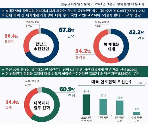 반면 종전선언이 필요하지 않다고 답한 비율은 29.4%에 그쳤다.