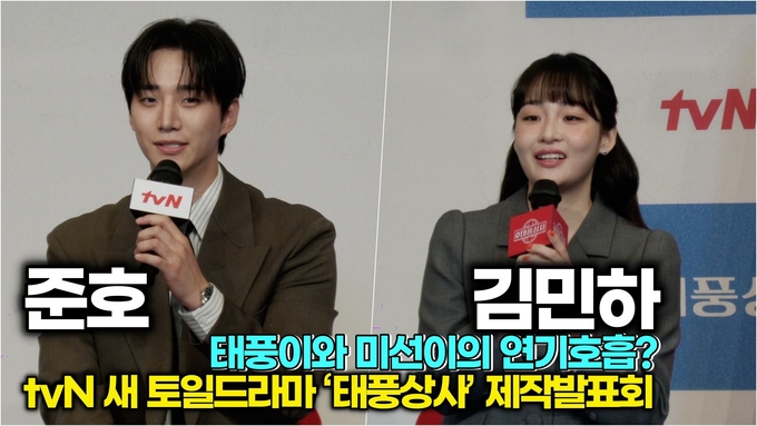 배우 이준호, 김민하가  10월 1일(수) 오후, 서울시 구로구 신도림동 더링크서울 트리뷰트 포트폴리오 호텔에서 열린 tvN 새 토일드라마 ‘태풍상사’ 제작발표회에 참석해 공통 인터뷰를 진행하고 있다.