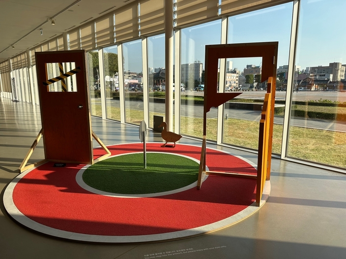 전시장 입구에 위치한 작가의 또 다른 설치 작품 ‘들어가지 마시오’는 제목과 다르게 관객이 작품 안으로 들어갈 수 있게 제작됐다. 역설적인 설정을 통해 관객의 적극적인 행동을 유도하려는 작가의 숨은 의도가 엿보이는 작품이다.