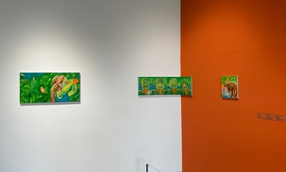 전시장의 오른쪽에서는 함미나 작가의 작품도 함께 만날 수 있다. 함미나 작가는 어린 시절 기억하는 인물과 풍경을 소재로 삼아 그림을 그린다. 모두에게 존재하는 어린 시절에 대한 기억은 시간이 지날수록 희미해진다.