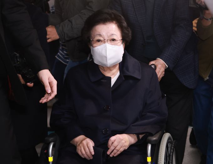 6일 연합뉴스에 따르면 이날 특검팀은 이 전 위원장을 소환해 조사했다. 이날 오전 9시 31분쯤 휠체어를 타고 출석한 이 전 위원장은 '금거북이 등을 건넨 이유가 뭐냐', '공직 임용 청탁 목적의 선물이었냐' 등 취재진 질의에 아무런 대답 없이 조사실로 들어갔다.