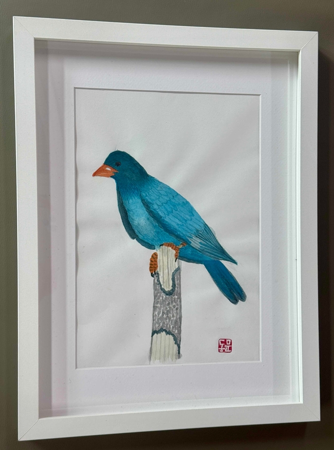 이 작가는 꽃과 새를 소재로 그린 작품 40점을 이곳에서 전시하고 있다.