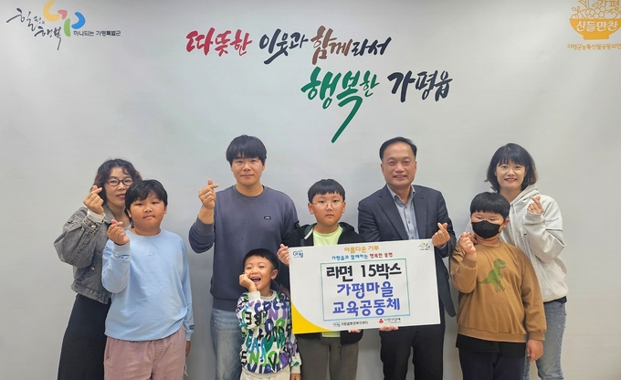 가평군 가평마을교육공동체는 최근 가평읍 행정복지센터를 방문해 이웃돕기 성품으로 라면15박스를 전달했다.