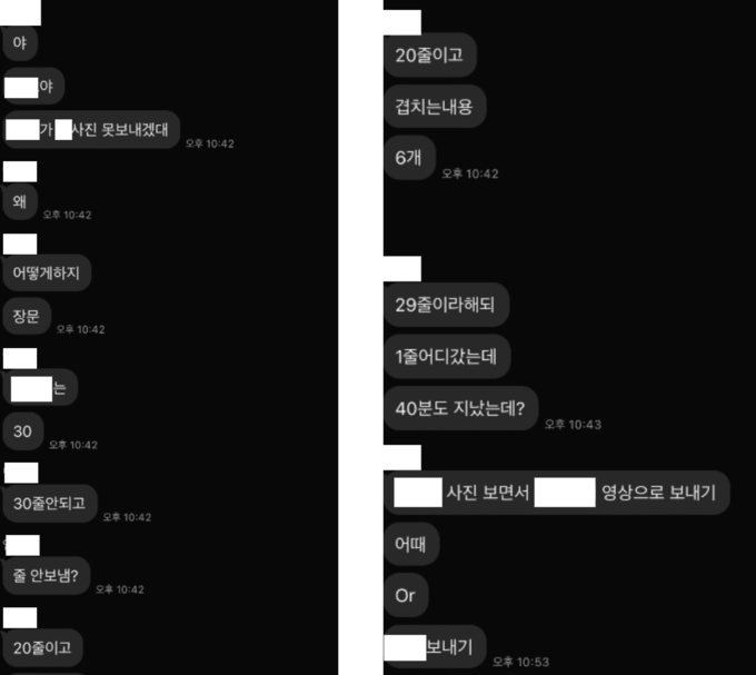 금품 갈취 요구에 응하지 않으면 성기 사진을 찍어 보내라고 협박했고, 30줄에 달하는 사과문을 강제로 작성하게 했다. 피해 학생 부모의 실명을 언급하며 가족을 모욕하거나 성희롱을 일삼았고, 요구에 따르지 않으면 "부모님의 성기나 중요 부위를 찍어 보내라"고 협박했다. 이 밖에도 게임 참여 강요, 등하교 동행 강요 등 폭력 행위가 이어졌다.