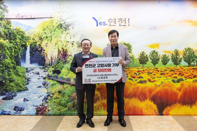 연천군은 지난 7일 오후 4시 30분 군수실에서 ㈜케이지엔지니어링 종합건축사 사무소 김상찬 사장으로부터 고향사랑기부금 500만 원을 전달받았다.