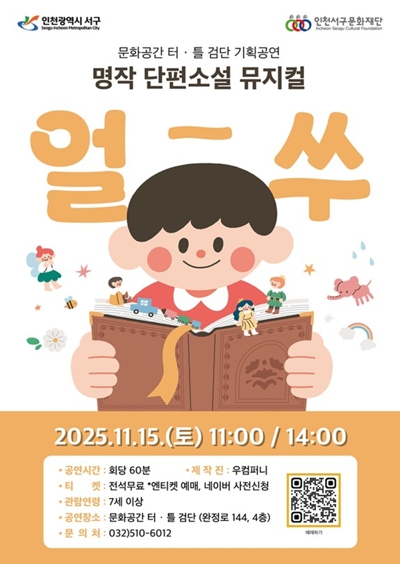 서구문화재단 관계자는 “검단 지역의 첫 복합문화공간인 문화공간 터·틀에서 온 가족이 함께 즐길 수 있는 국악뮤지컬을 준비했다”며 “전 세대가 함께 공감하고 교감할 수 있는 뜻 깊은 시간이 되길 바란다”고 말했다.