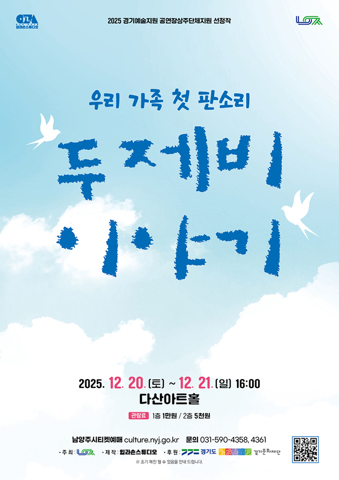 남양주시가 오는 20일과 21일 다산아트홀에서 판소리 ‘두 제비 이야기' 를 선보인다.