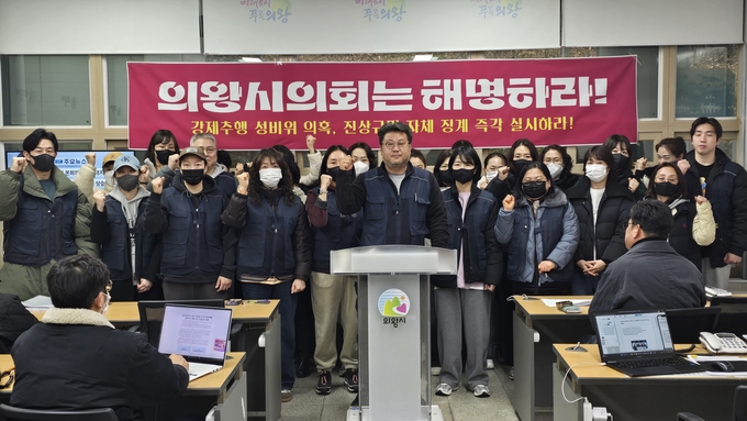 의왕시의회 A시의원에 대한 성추행 의혹을 둘러싸고 지역사회에서 진상규명 요구가 이어지는 가운데, 11일 의왕도시공사 새희망노동조합도 시청 브리핑룸에서 기자회견을 열고 의왕시의회의 적극적인 대응을 촉구하고 나섰다.