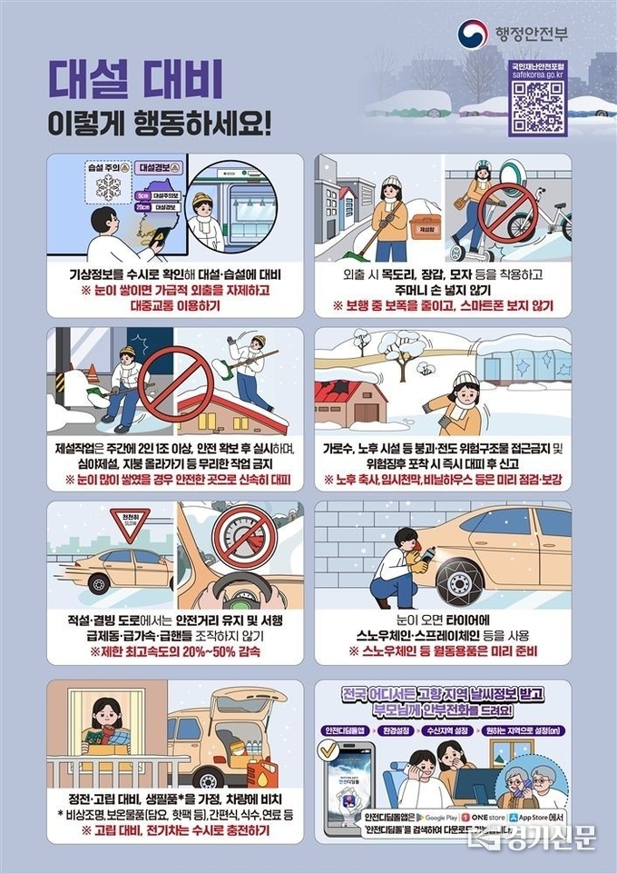 신인철 안성소방서장은 “겨울철에는 예상치 못한 기상 변화로 사고 위험이 급격히 높아진다”며 “시민들께서는 국민행동요령을 미리 숙지해 폭설과 한파로 인한 피해를 예방해 주시길 바란다”고 말했다.