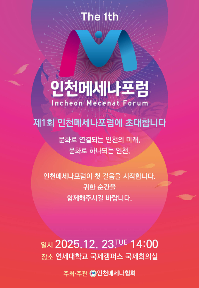 인천메세나포럼이 오는 23일 오후 2시 인천 송도 연세대학교 국제캠퍼스에서 ‘제1회 인천메세나포럼’을 연다.