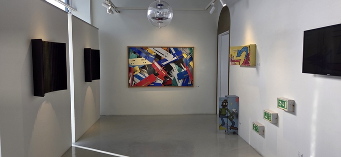 특히 낡은 캐비닛 형태를 띤 ‘Hab&Gut Graffiti 2er gelb’는 나무 프레임과 캔버스를 결합한 작품으로 오일과 아크릴을 활용해 실제 오브제에 가까운 질감을 구현했다.