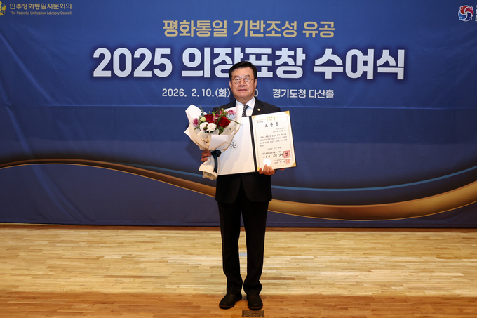 이상복 오산시의회 의장이 지난 10일 경기도청 다산홀에서 ‘2025년 평화통일 기반 조성 유공 표창’을 받았다.