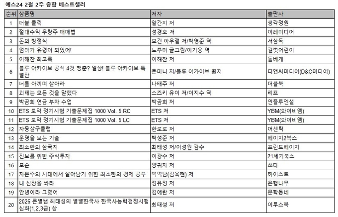 예스24 2월 2주차 베스트셀러…알간지 ‘더블 클릭’ 정상