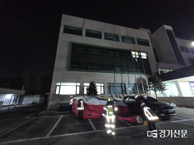 14일 저녁 안성시 도기동 소재 안성경찰서 옥상에서 한 민원인이 극단적 선택을 시도한다는 신고가 접수돼 소방과 경찰이 긴급 출동하는 소동이 벌어졌다.