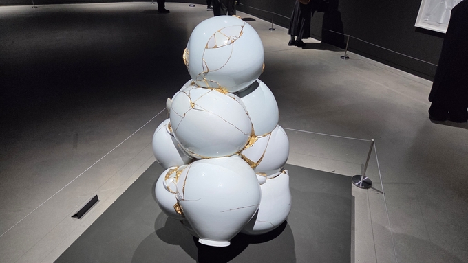 백색의 도자 표면 위에 균열과 파편을 금색으로 덧칠해 결합한 작품은 도자가의 새로운 형태와 층위로 완벽한 결과물이 나오기까지의 과정을 숨기기보다 드러낸다.