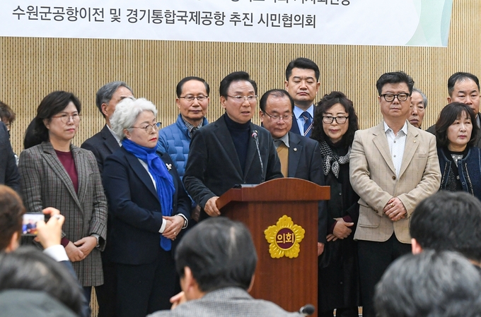 ‘수원군공항이전 및 경기통합국제공항 추진 시민협의회(이하 협의회)’는 이날 경기도의회 브리핑룸에서 기자회견을 열고 국토교통부 제7차 공항개발 종합계획(2026~2030년)에 경기국제공항이 반영되도록 도가 적극 행정에 나서야 한다고 밝혔다.