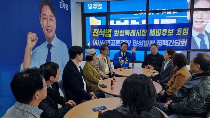 진석범 화성시장 예비후보와 시민사회 단체가 정책 간담회를 열고 화성특례시를 ‘시민주권도시’로 전환하기 위한 방향에 공감대를 형성했다.