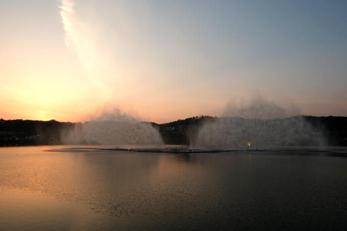 넓게 펼쳐진 호수와 주변 산세가 어우러지고, 호수를 따라 이어지는 산책로는 완만하게 조성되어 있어 누구나 부담 없이 걸을 수 있다. 길을 따라 걷다 보면 수면 위로 햇빛이 반짝이고, 바람이 잔잔하게 스쳐 지나간다. 계절에 따라 달라지는 풍경 역시 이곳의 매력이다. 특히 해 질 무렵이면 붉은 노을이 호수 위로 번지며 온통 주황빛으로 물드는 풍경은 그 자체로 순간을 사로잡는다.