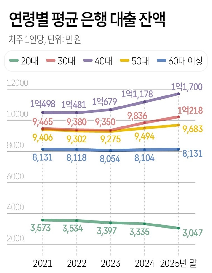 DSR 규제 강화로 20대 가계대출 여력이 줄어든 반면, 30대는 상대적으로 주담대 비중이 높아 대출 잔액이 늘었다.