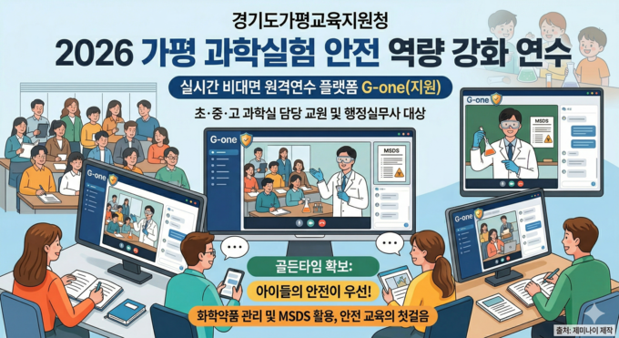 경기도가평교육지원청은 학생주도의  미래형 과학 수업을 안심하고 실현하기 위해 오는 5월7일부터 21일까지 관내 초.중.고 과학실 담당 교원및 행정실무사 40여 명을 대상으로 '2026 가평과학실험 안전역량 강화 연수'를 진행할 계획이라고 밝혔다.