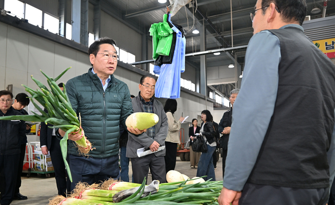 유정복 인천시장은 15일 남동구 남촌농산물도매시장을 찾아 현장의 애로사항을 청취하고 농산물 수급 전반을 점검했다.