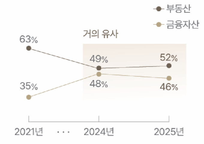 부동산보다 금융투자를 우선 고려하는 인식이 강해졌다. 최근 5년간 부자들의 포트폴리오에서 부동산 비중은 63%에서 52%로 줄고, 금융자산 비중은 35%에서 46%로 증가했다.