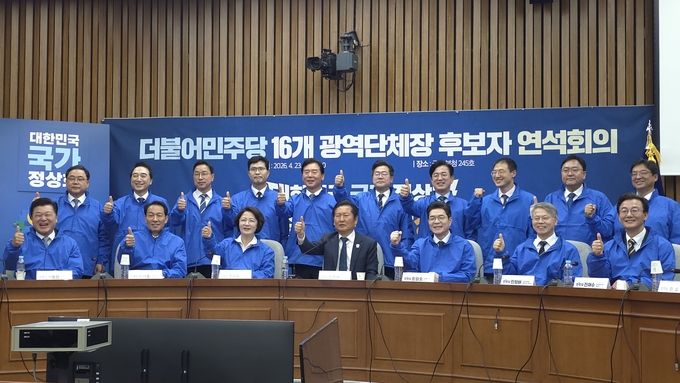 더불어민주당 6·3 지방선거 16개 광역단체장 후보들이 23일 한자리에 모여 다가오는 지방선거 필승을 향한 본격적인 행보에 나섰다.