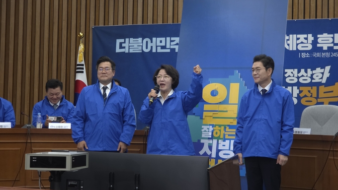 민주당은 이날 국회 본청에서 정청래 대표와 지도부를 비롯해 추미애 경기도지사 후보, 박찬대 인천광역시장 후보 등 16개 광역단체장 후보들이 참석한 연석회의를 열었다.