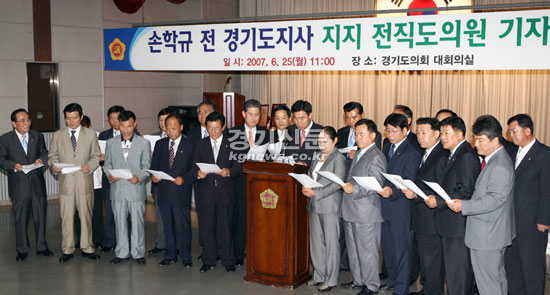 선진평화연대와 손학규를 지지하는 전직 경기도의원 모임 소속 23명은 이날 도의회 대회의실에서 지지 선언대회를 열고 “손 전 지사의 대통령 당선을 위해 동참하게 됐다”고 말했다.