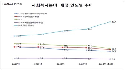 이렇듯 복지지출이 규모면에서는 성장하였다고는 하나 복지 분야별 배부와 효과성 측면에서 볼 때 예산의 조정 및 증액이 반드시 필요하며 적극적인 복지재정의 편성이 필요함을 보여주고 있다.