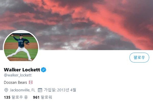 워커는 6일 트위터와 인스타그램 자기 소개란에 'Doosan Bears'를 적어넣었다.