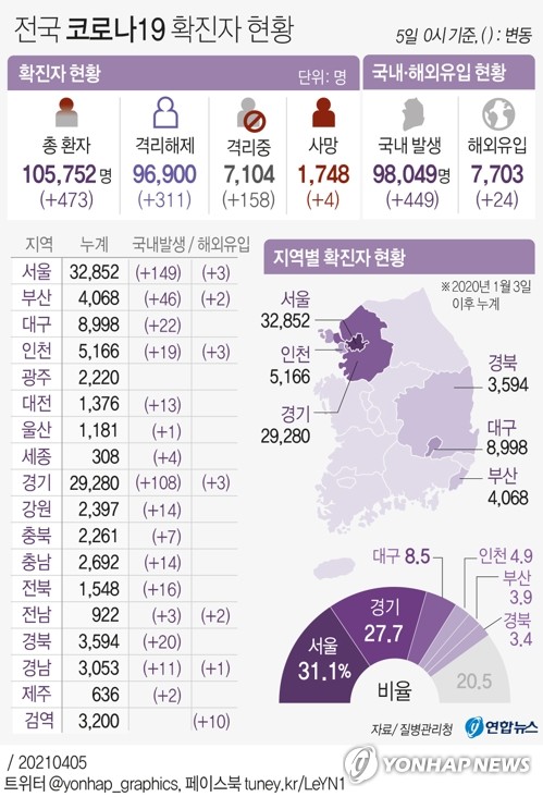 중앙방역대책본부(방대본)는 5일 '주요 3종 변이 바이러스' 감염자가 41명 늘어 총 330명으로 집계됐다고 밝혔다.
