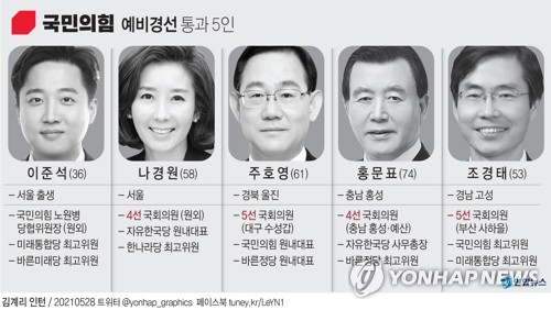 국민의힘의 차기 당대표 선거가 이준석 전 최고위원, 나경원 전 의원, 주호영·홍문표·조경태 의원의 대결로 압축됐다.