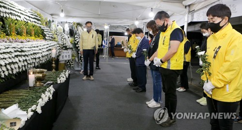 4·16세월호참사가족협의회는 12일 광주 동구청에 마련된 철거건물 붕괴참사 합동분향소에 참배했다.