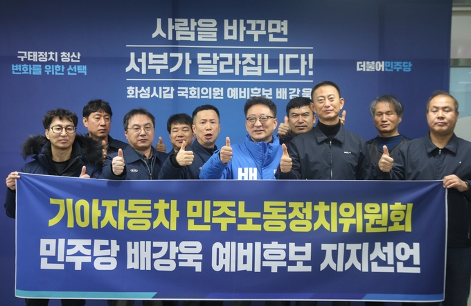 24일 배 예비후보 선거캠프에 따르면 지난 16일 전국노동연대에 23일에는 기아자동차 민주노동정치위원회가 배강욱 예비후보 선거사무소에서 지지 선언을 했다.