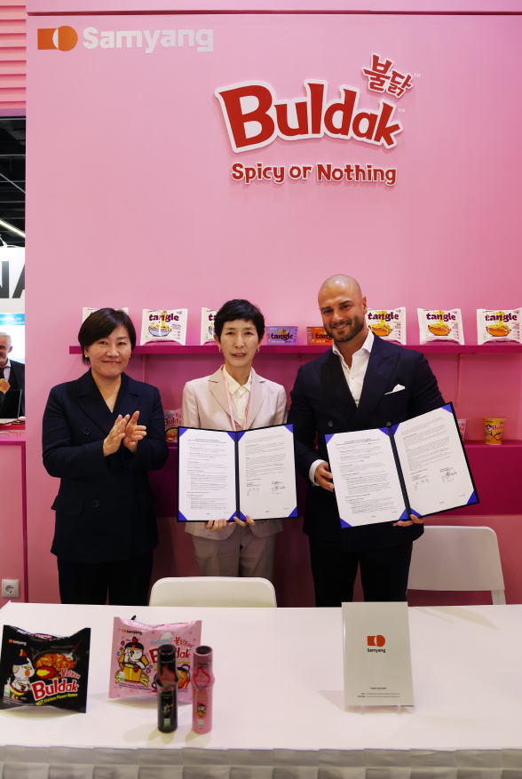 9일 삼양식품에 따르면 김정수 부회장은 4일(현지시각) ‘아누가 2025’에서 삼양식품 부스를 방문해 현장을 살피고 글로벌 식품업계 관계자들과 교류했다. 이날 행사에서는 송미령 농림축산식품부 장관이 임석한 가운데 프랑스 유통업체 SRG 인터내셔널과 MOU를 체결해 현지 판매망 확대의 발판을 마련했다.