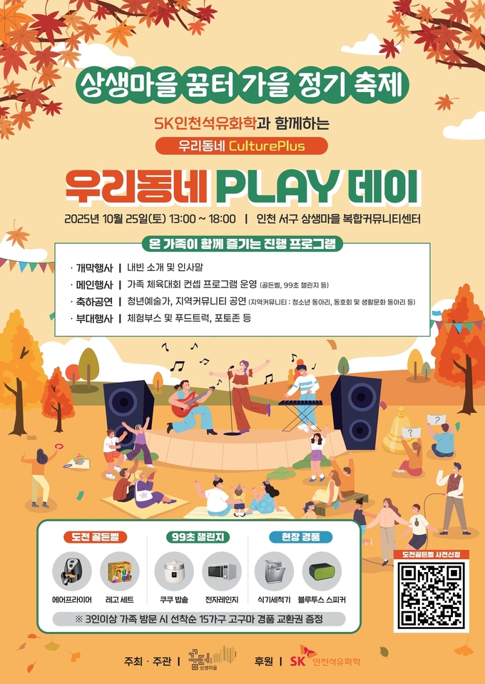 온가족이 함께할 수 있는 명량 체육대회 ‘우리동네 플레이 데이’가 오는 25일 인천 서구 석남동 상생마을 복합커뮤니티센터 일대에서 열린다.