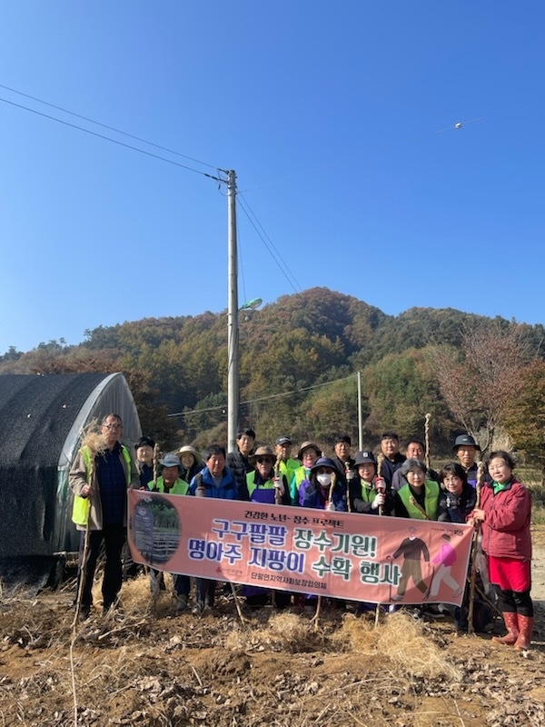 양평군 단월면 지역사회보장협의체는 지난 5일 협의체 위원 30여 명이 참여한 가운데 부안리 소재 '힐링하우스'에서 '구구팔팔 장수기원 명아주 지팡이 수확행사'를 진행했다.
