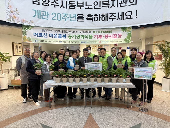 남양주도시공사(이하 공사)는 지난 7일, 남양주시동부노인복지관을 방문해 수동면에 거주하는 취약계층 어르신들을 위한 공기정화식물 화분 50개를 제작, 기부했다고 밝혔다.