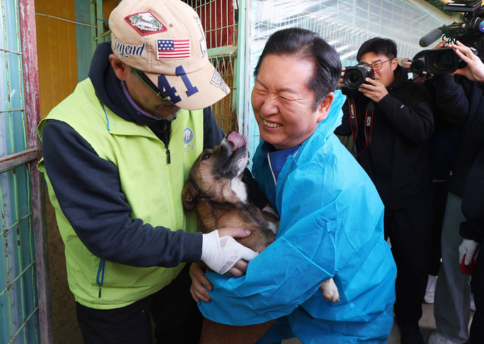 정청래 더불어민주당 대표는 9일 취임 100일을 맞아 기자간담회 대신 유기견 보호소를 찾아 봉사 활동을 했다.