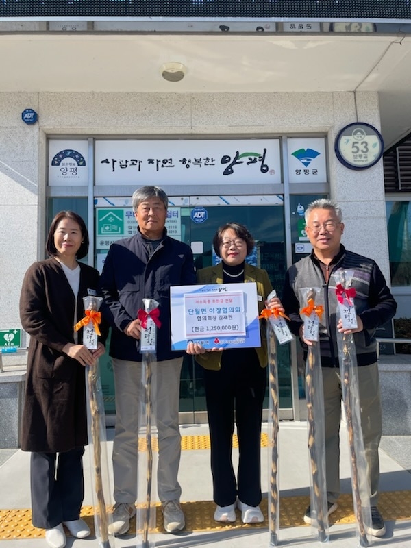 이번 기부는 단월면 마을 이장들이 뜻을 모아 자발적으로 참여한 것으로, 기부에 동참한 마을에는 단월면 지역사회보장협의체에서 만든 '구구팔팔 명아주 지팡이'를 답례로 제공할 예정이다.