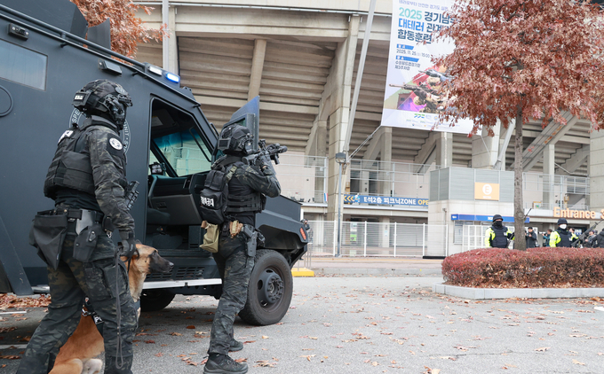 25일 경기남부경찰청은 수원월드컵경기장 3번 출입구 일대에서 대테러 관계기관 합동훈련을 실시했다.