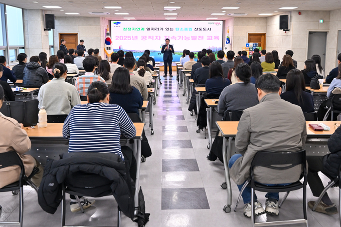 양평군은 지난 25일 오전 10시 군청 대회의실에서 '2025년 공직자 지속가능발전 교육'을 실시했다고 밝혔다. 이번 교육에는 양평군수를 비롯한 군 공직자 96명이 참석했으며 이 중 약 60%는 신규 임용자이다.