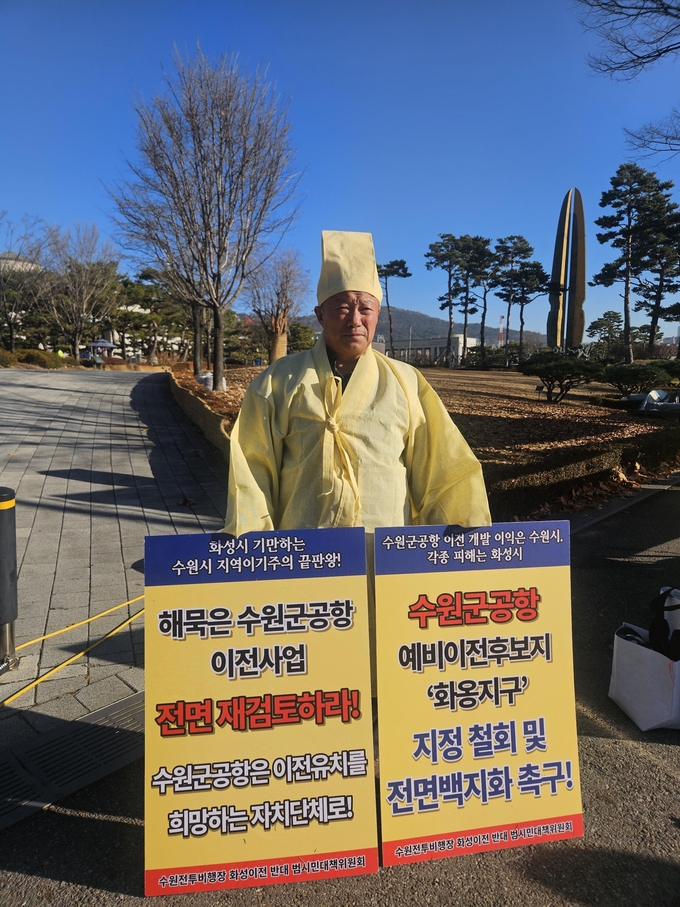 수원군공항 이전 전면 재검토 촉구… 화성시민단체 국방부 앞 1인 시위