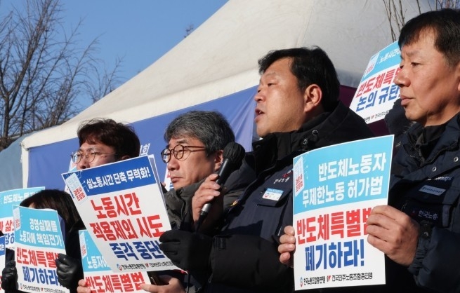 민주노총은 11일 성명을 내고 “법안에서 주 52시간제 예외 조항은 빠졌지만, 부대의견을 통해 필요성을 인정하고 후속 논의를 요청한 것은 사실상의 완화 신호”라며 “반도체특별법을 명분으로 노동시간 규제 완화나 쟁의권 제약을 시도하는 어떠한 움직임도 용납할 수 없다”고 밝혔다.